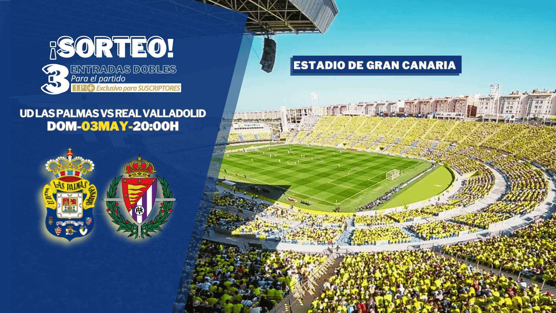 La recta final de la temporada en la LALIGA HYPERMOTION 2025/2026 entra en su momento más decisivo y la UD Las Palmas se prepara para afrontar un partido que puede marcar el rumbo de su campaña.El próximo domingo 3 de mayo a las 20:00 horas, el conjunto amarillo recibirá al Real Valladolid CF en el emblemático Estadio de Gran Canaria, en un encuentro que promete intensidad, emoción y un ambiente de alto voltaje, y LA PROVINCIA quiere que sus suscriptores formen parte de este ambiente único, dándoles la oportunidad de vivir el partido en directo y con un acompañante, gracias a este sorteo exclusivo que premia la fidelidad de su comunidad.💛 No te quedes fuera. Participa en este sorteo exclusivo para suscriptores y forma parte del espectáculo.⚽ Apoya a la UD Las Palmas y siente el fútbol como nunca.
